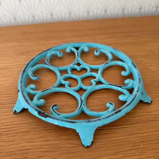 Antique vintage french Cast iron kitchen Trivet france blue turquoise 1302269
