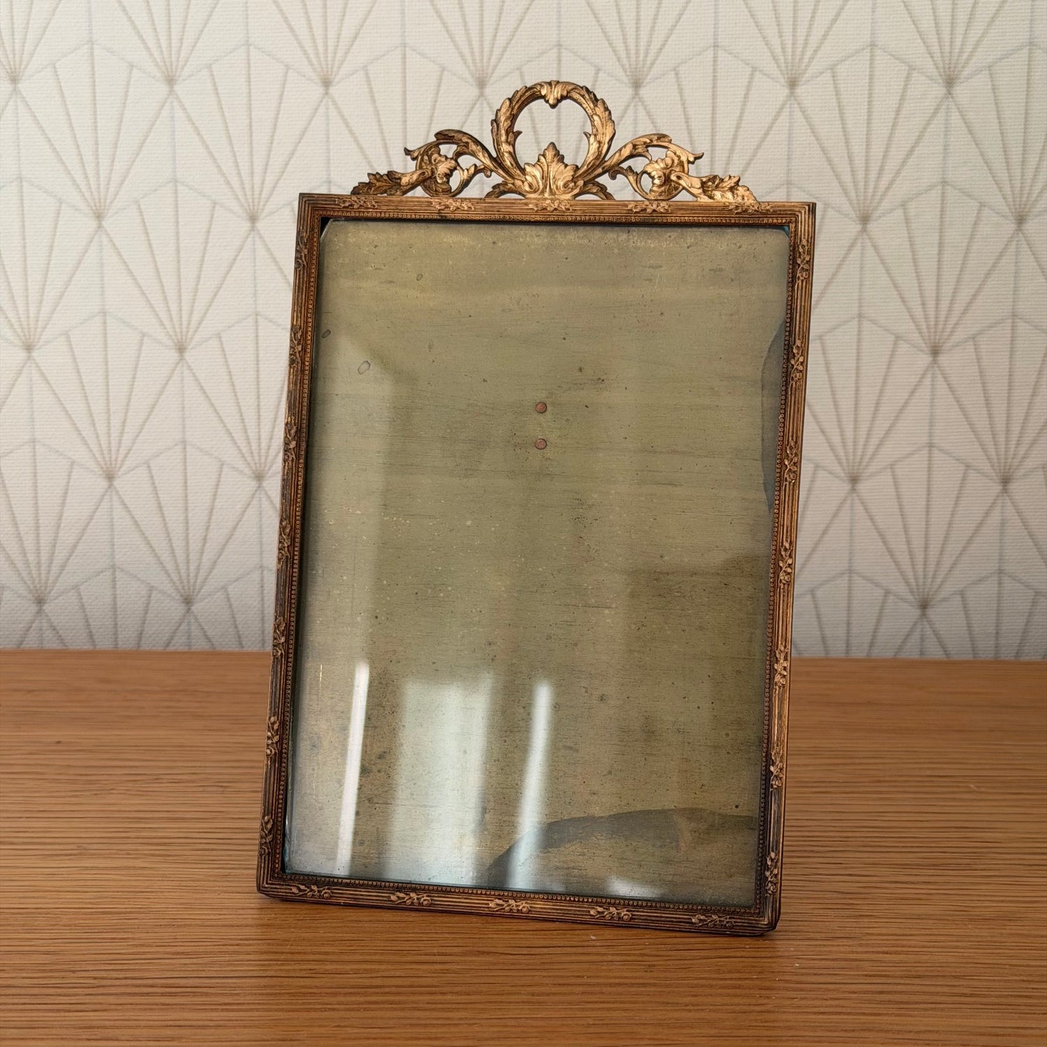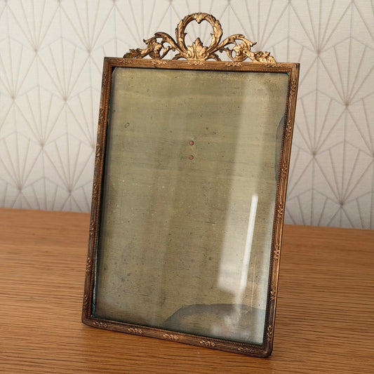 Vintage french Brass Frame Glass photo Ribbon 4 1/2" x 7" 0302269