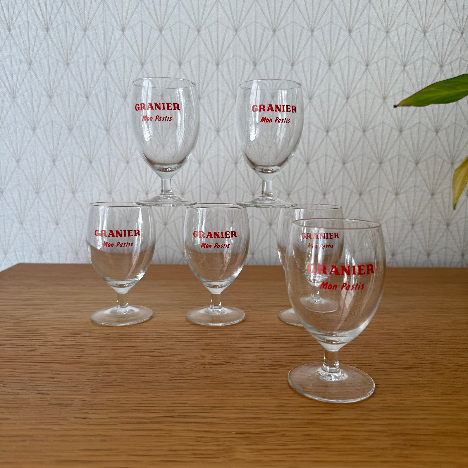 6 FRENCH GRANIER ANISETTE PASTIS GLASSES