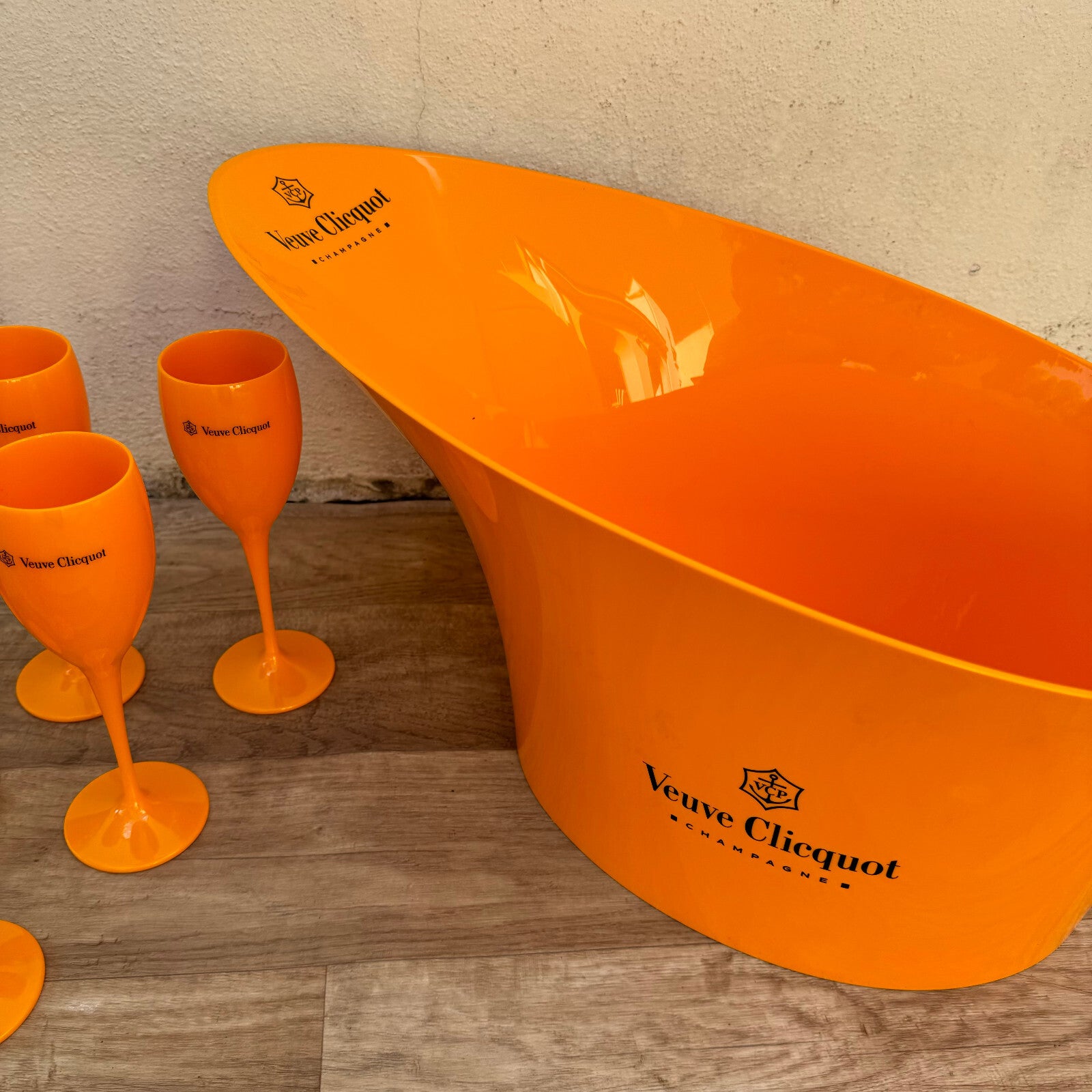 6 x Veuve Cliquot Clicquot Orange Glasses Flutes Ice + bucket Champagne 2006251