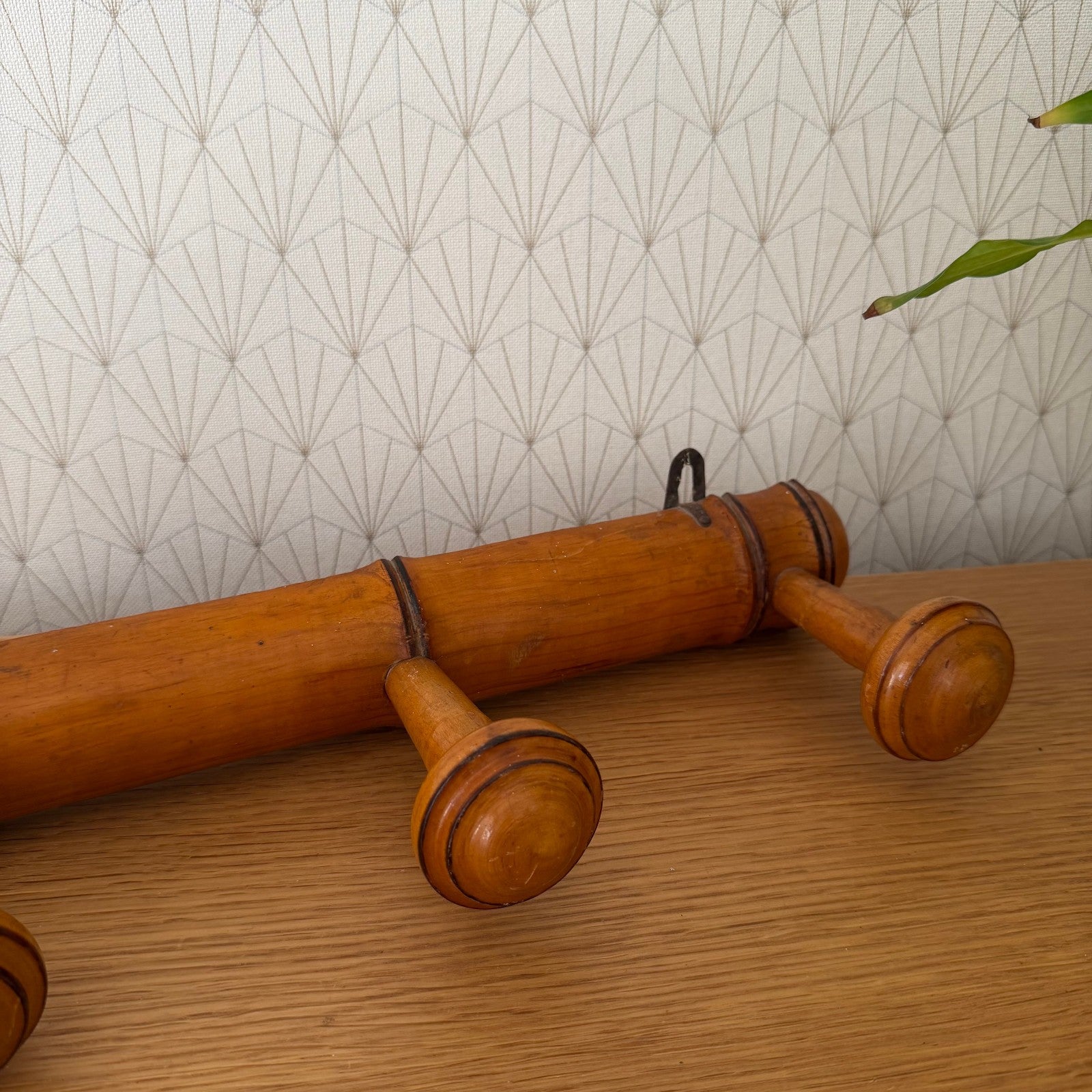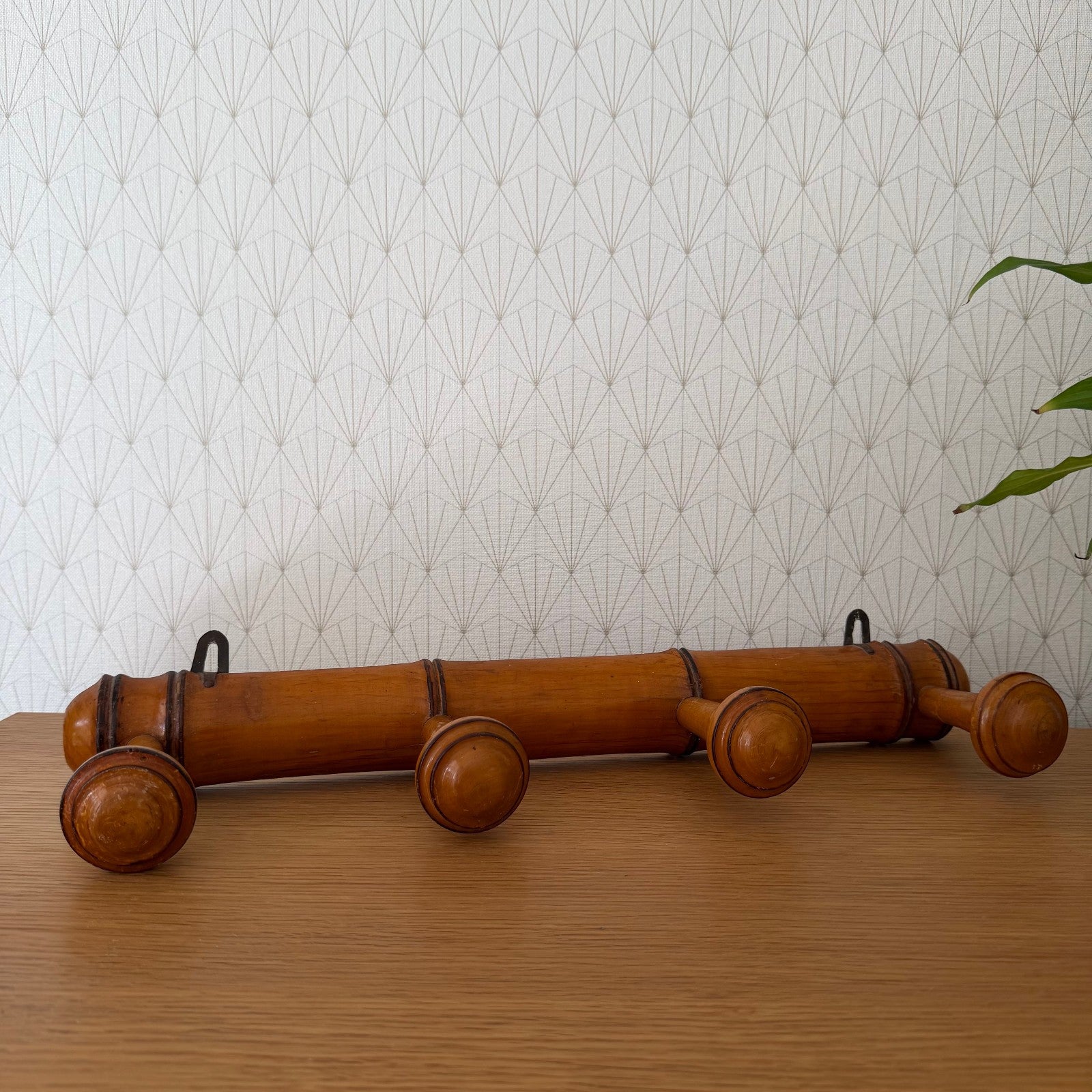 Antique French Coat Hook Hat 4 Pegs Hanger Faux Bamboo rack 0810256