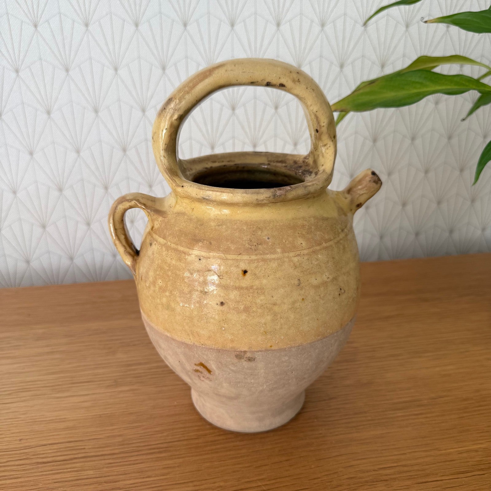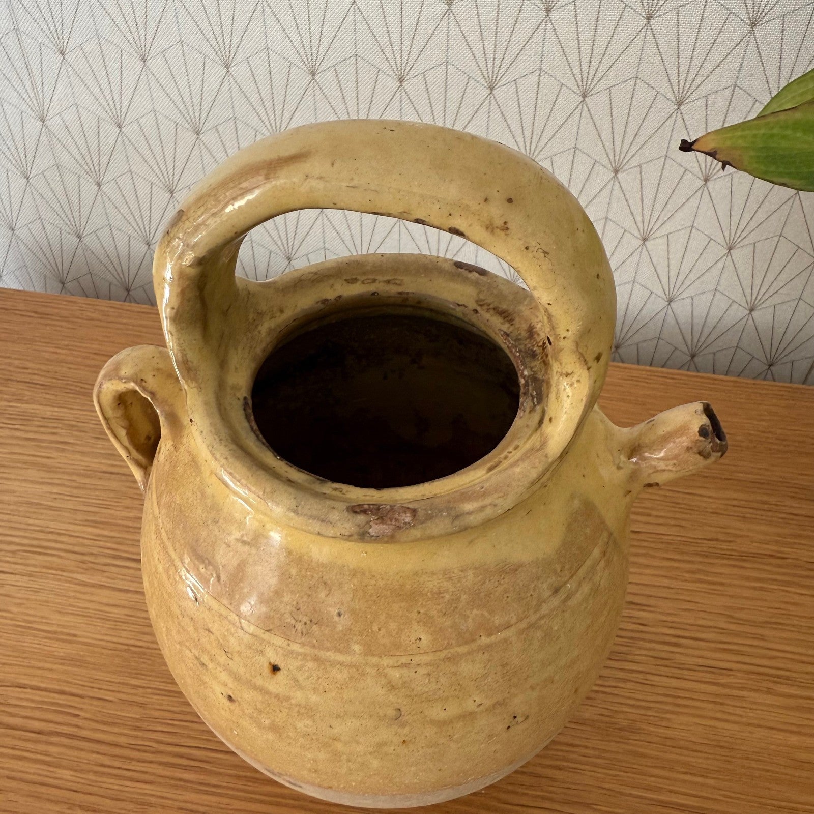 Antique French Yellow Glazed Terra-cotta Gargoulette Water Jug Confit 3008255
