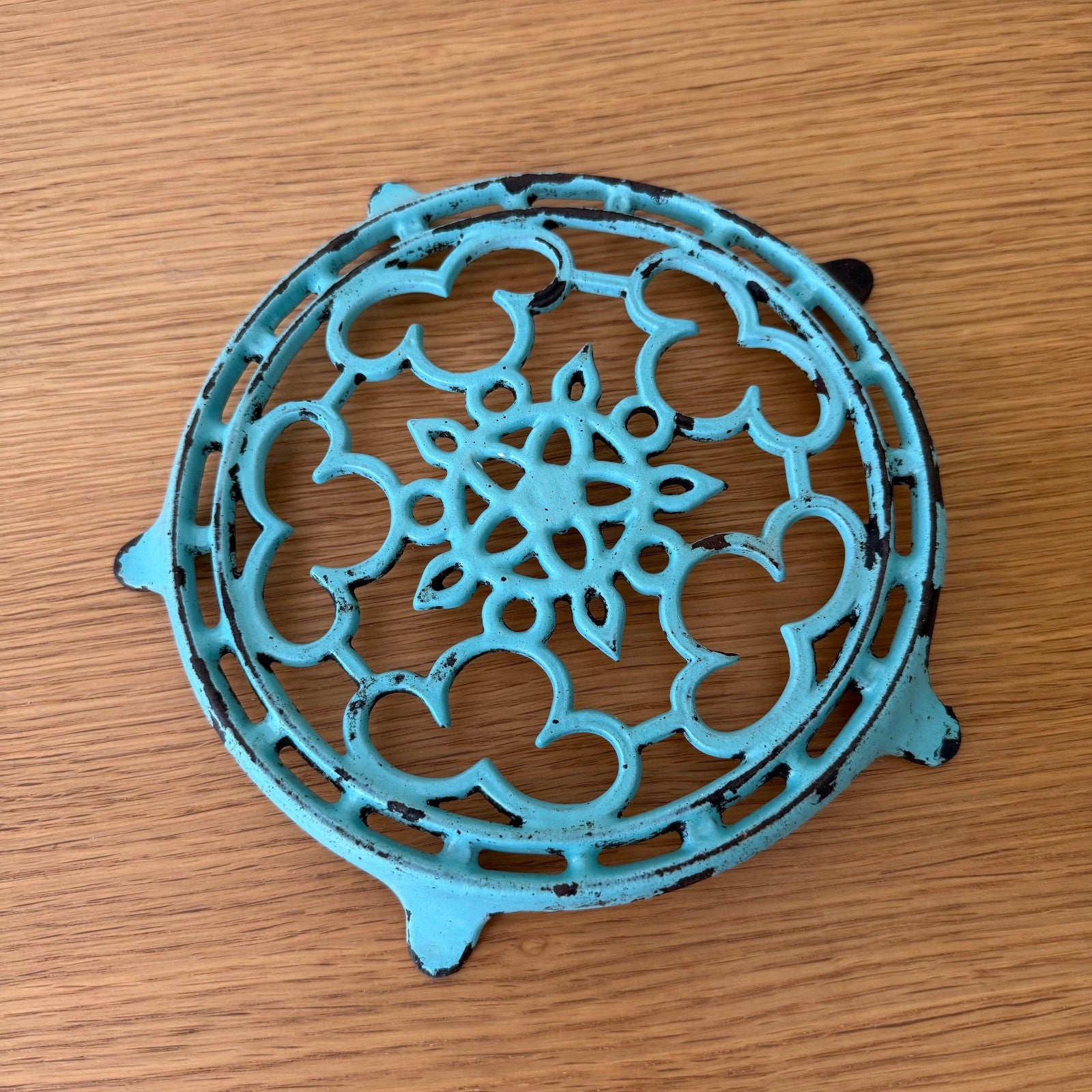 Antique vintage french Cast iron kitchen Trivet france blue turquoise 2307254