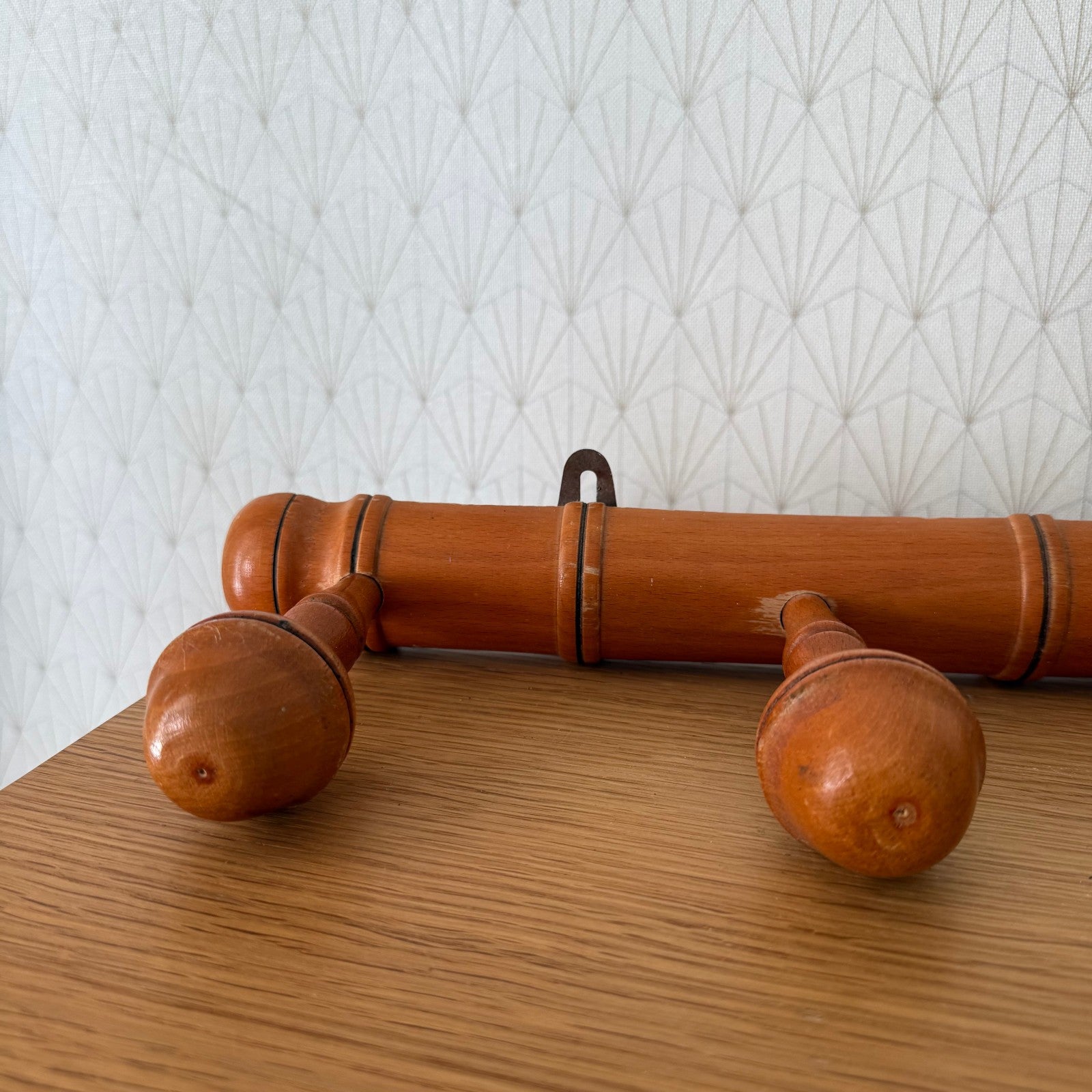 Antique Wooden French Coat Hook Hat 5 Pegs Hanger Faux Bamboo rack 03072510