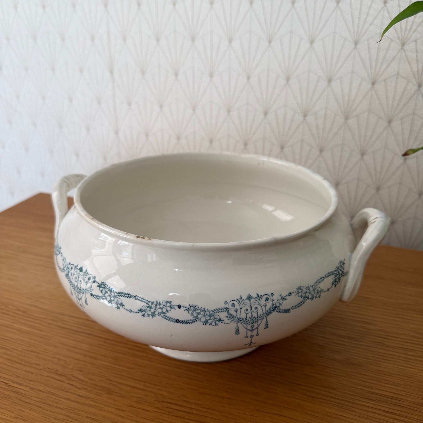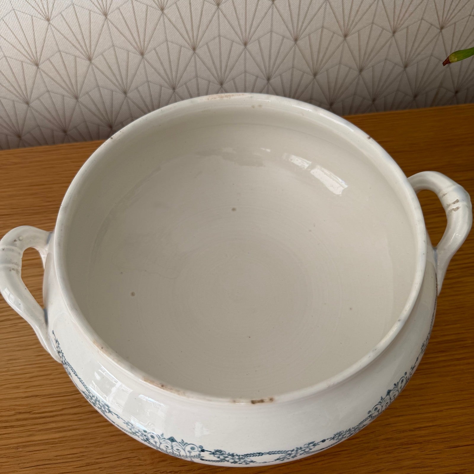 French Tureen Earthenware White Blue Fruits Bowl Terre De Fer GIVORS 2409254