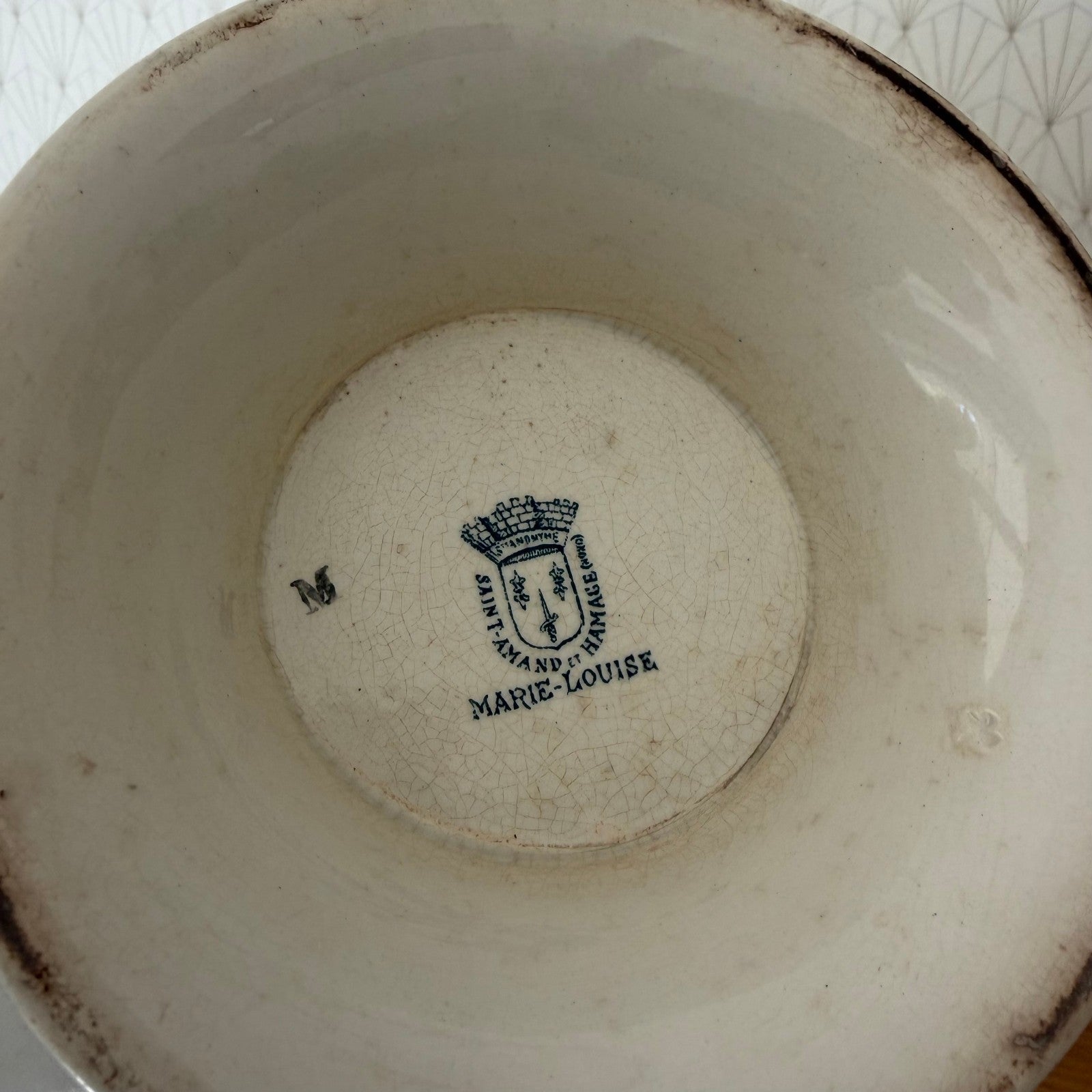 French Tureen Earthenware White Blue Fruits Bowl Terre De Fer St Amand 2010252
