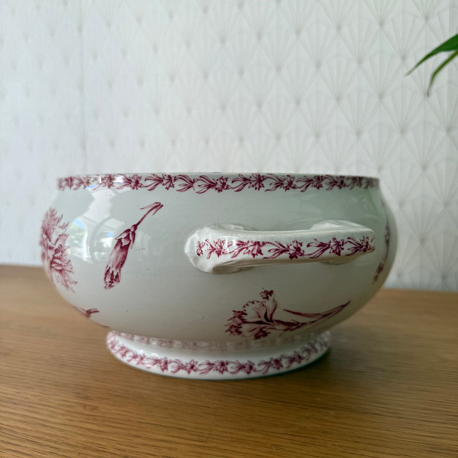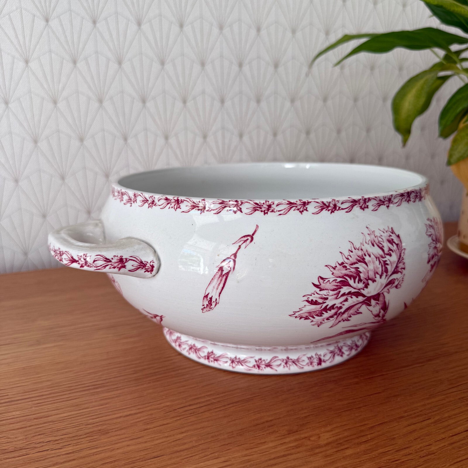 French Tureen Earthenware White Fruits Bowl Terre De Fer Luneville 0405256