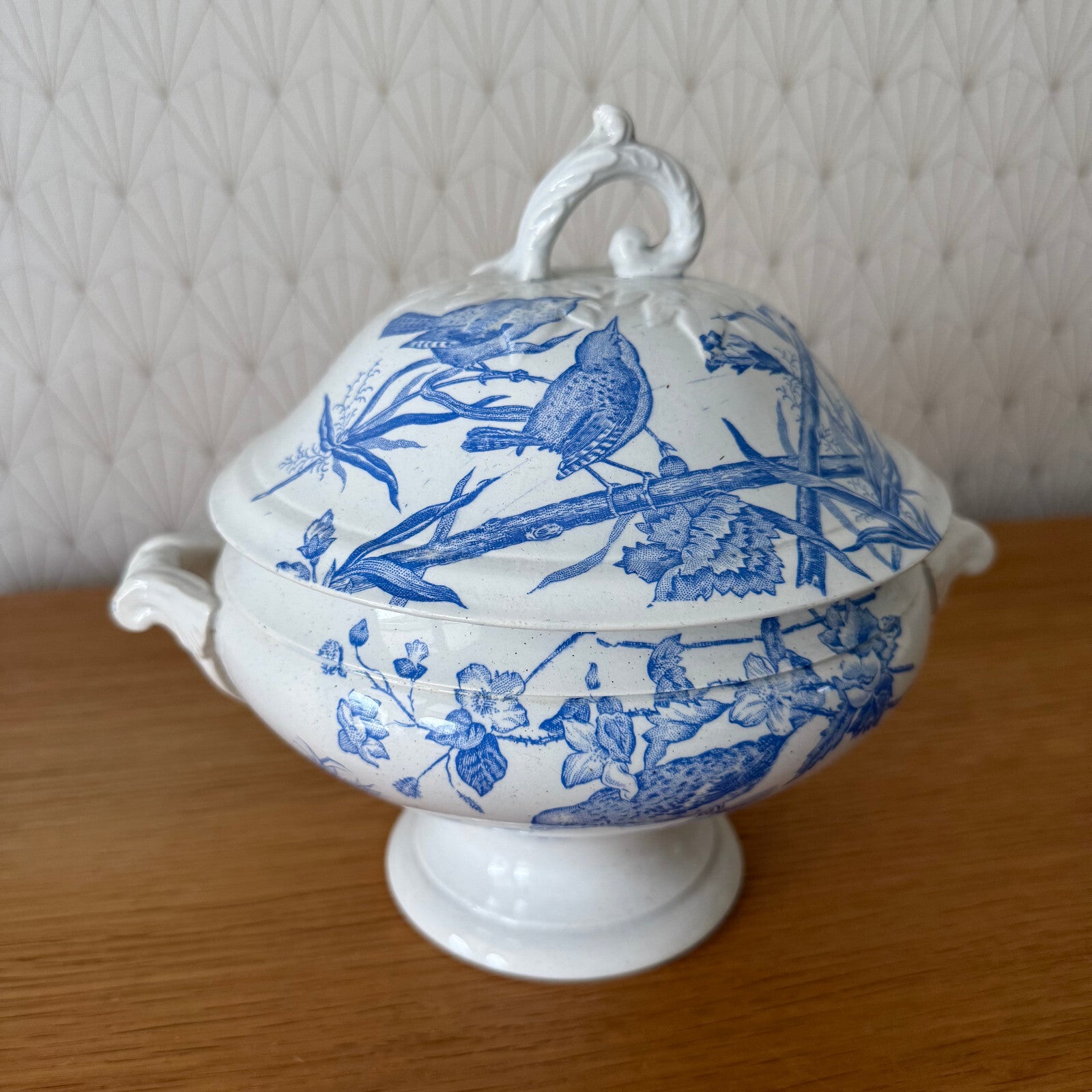 French Vintage Tureen St Amand Earthenware Flowers Fruits Blue Bowl 1804251