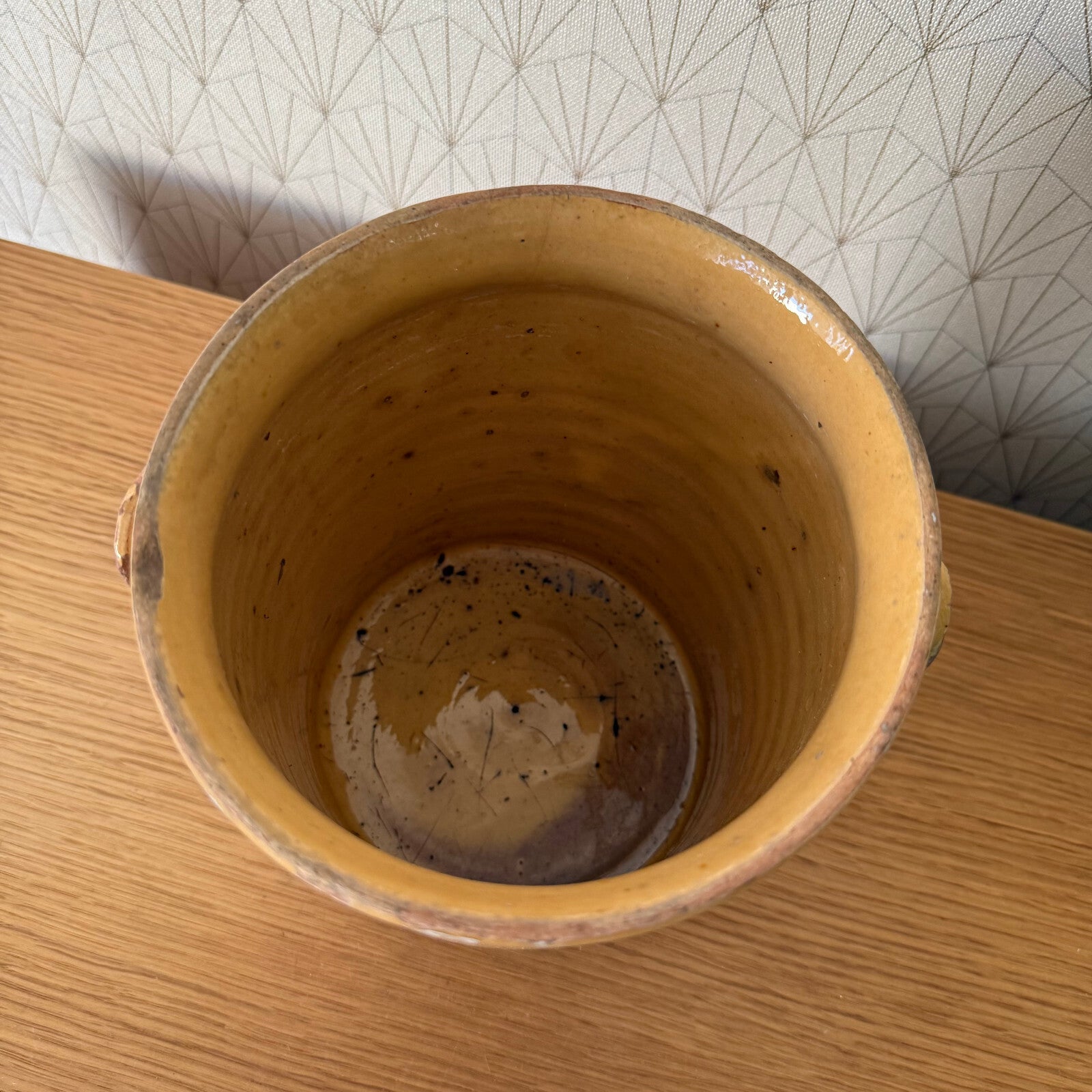 Handmade Glazed Yellow Antique French Confit Jam Pot Small Terracotta 1904257