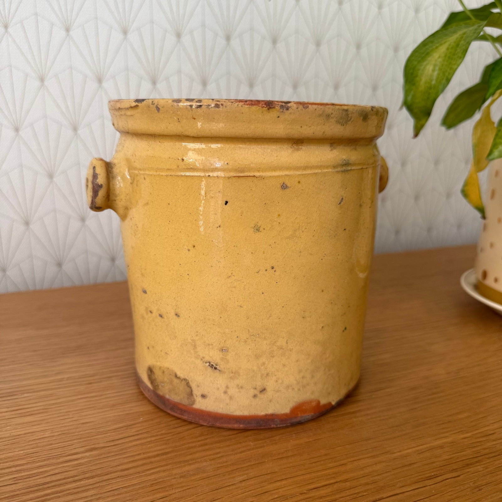 HANDMADE GLAZED YELLOW FRENCH CONFIT JAM POT STONEWARE 0108251