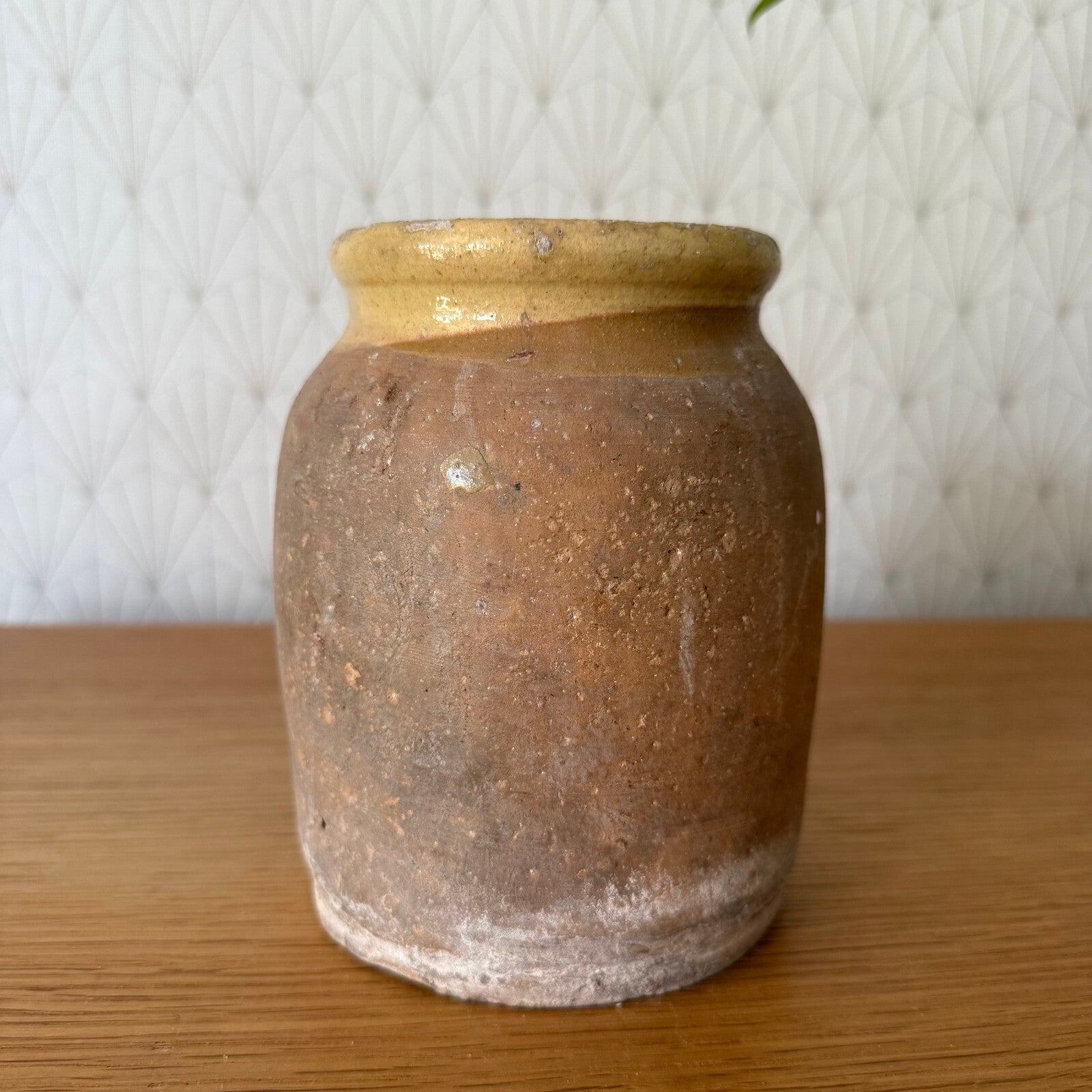 RARE HANDMADE GLAZED YELLOW ANTIQUE FRENCH CONFIT POT TERRACOTTA 2904259