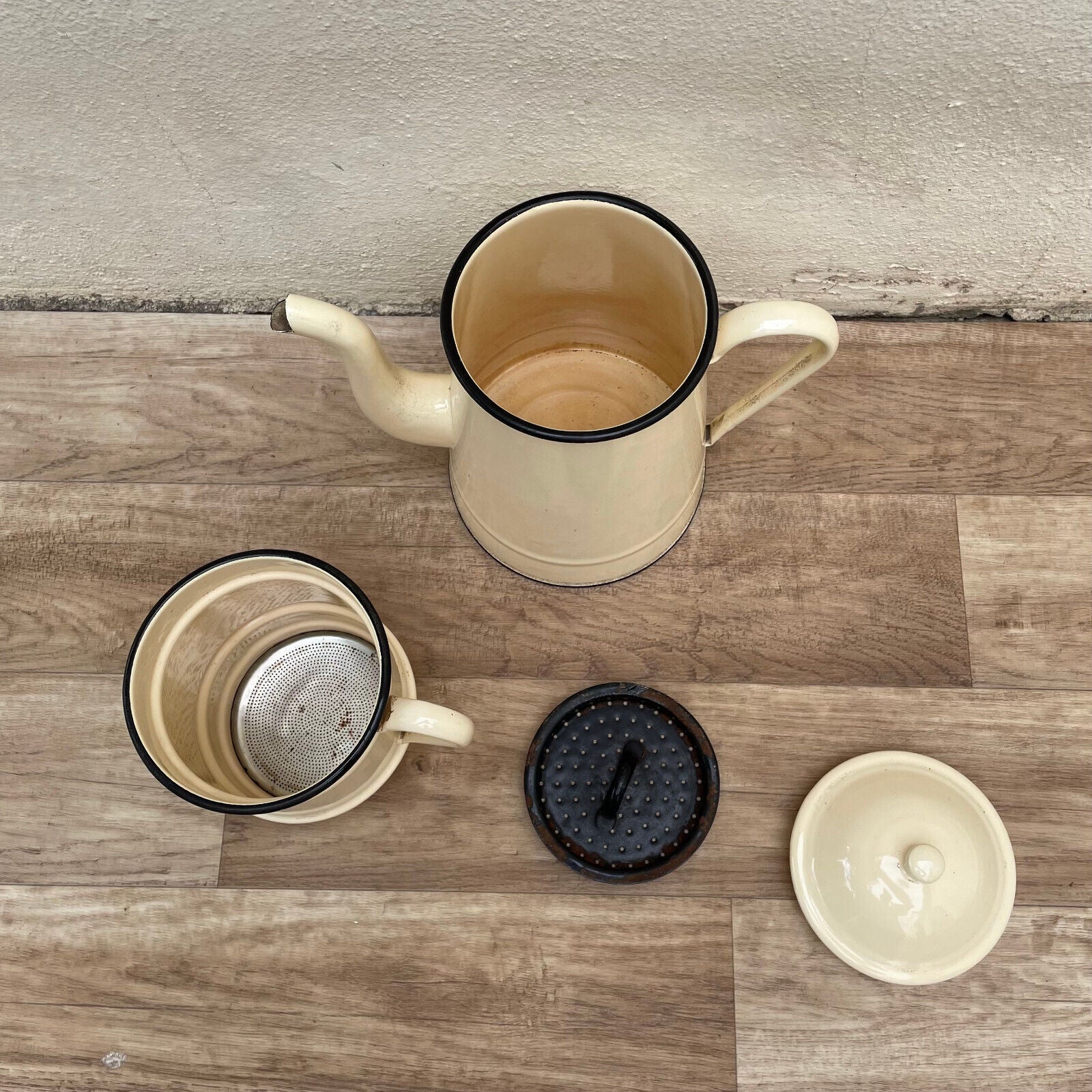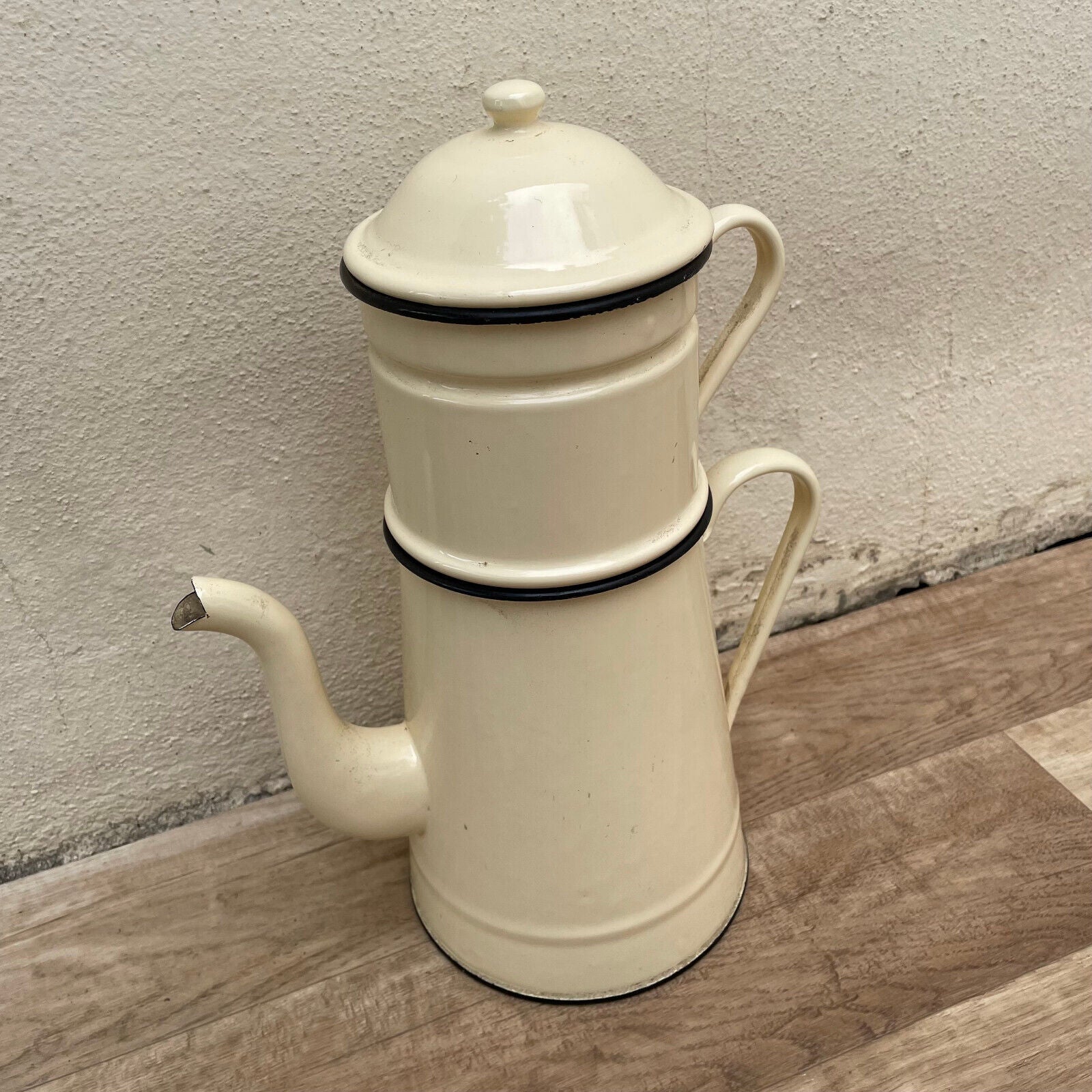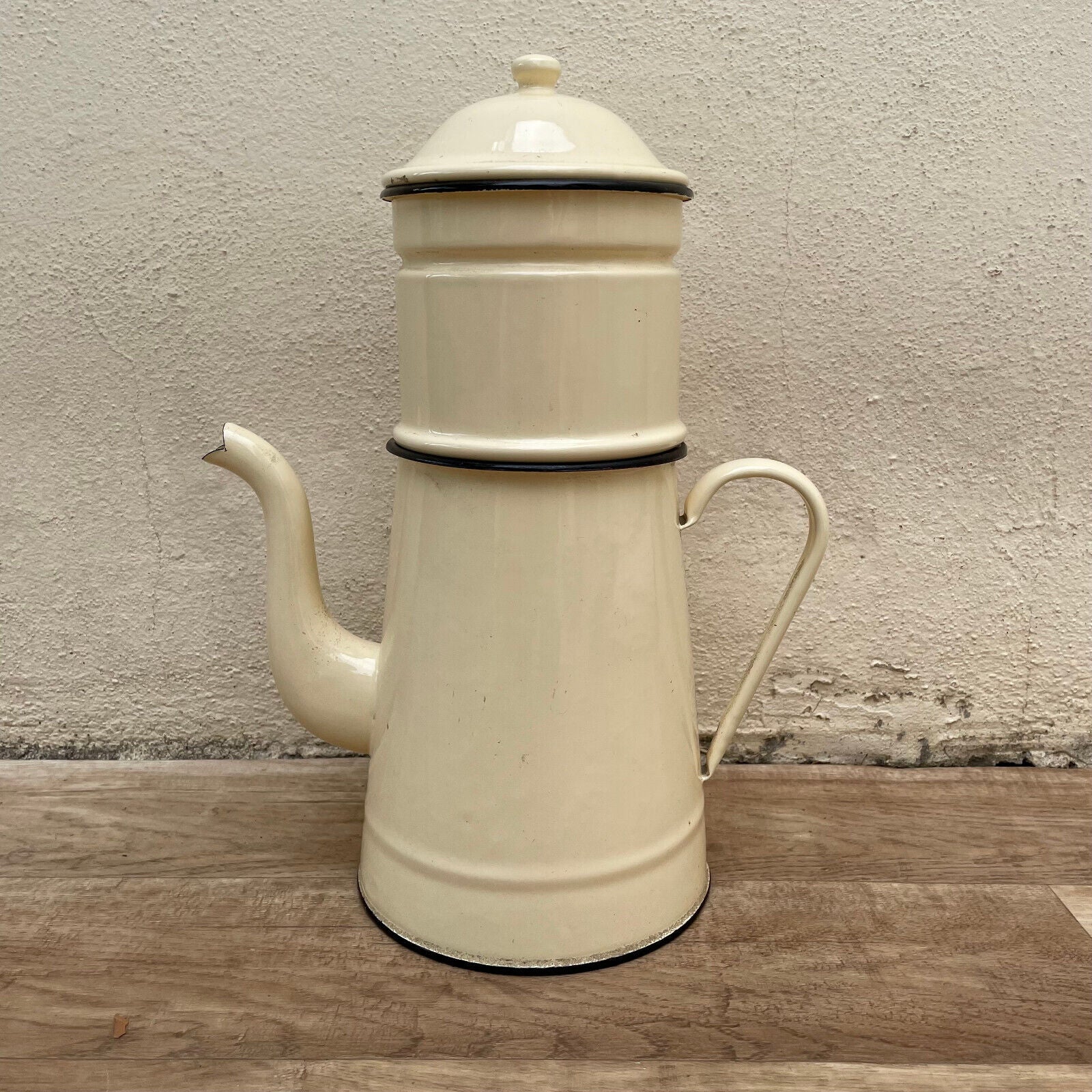 It stands 37cm/14 1/2" tall Perfect also for a vintage french decoration enjoy!VINTAGE RETRO FRENCH ENAMEL TEA / COFFEE POT in a beige color