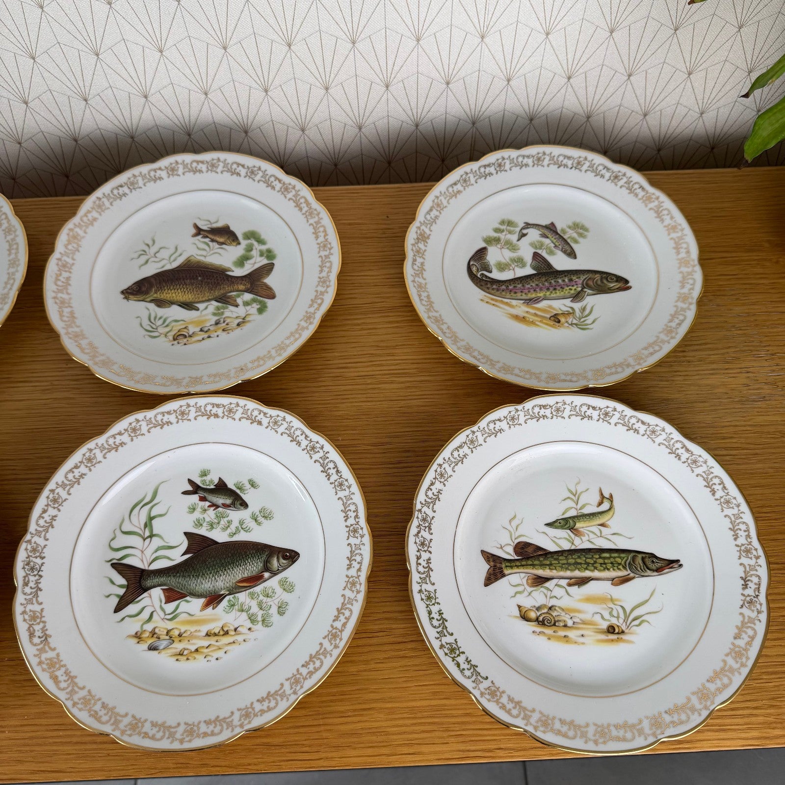 Vintage Bavarian Vintage set of 12 Fish Porcelain Dinner Plates tray 2710255