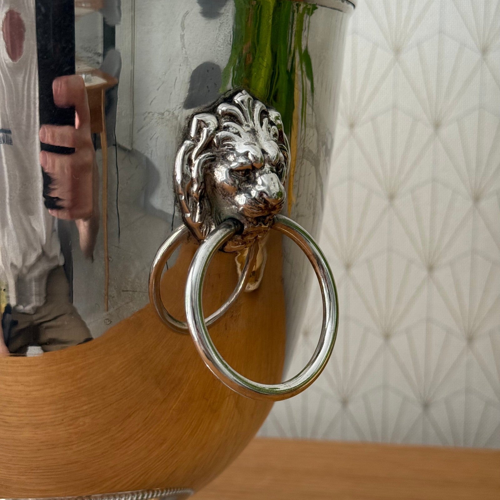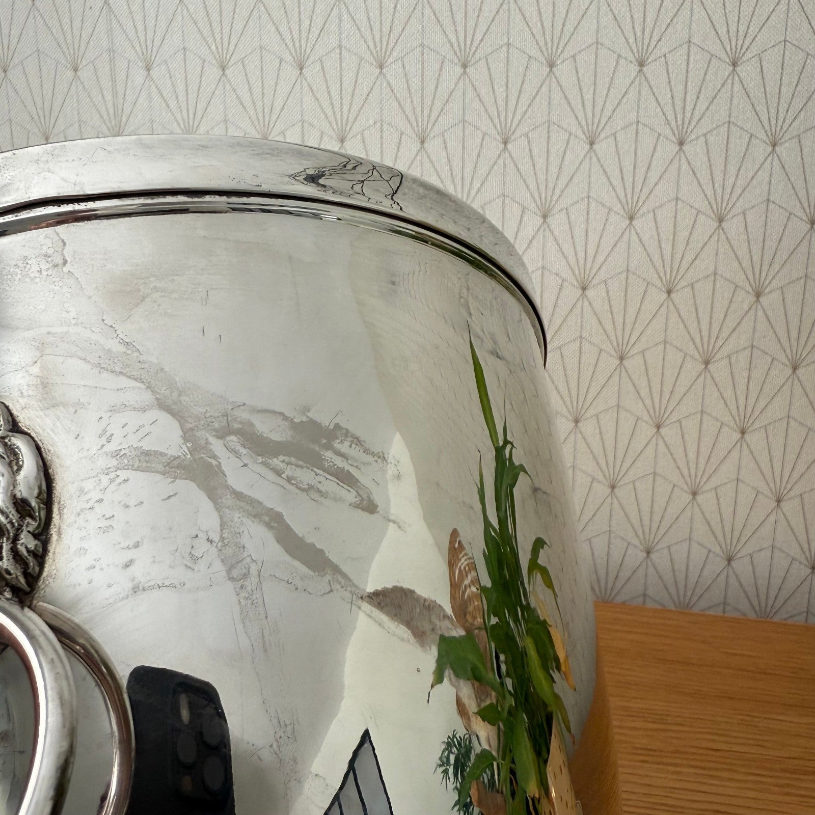 Vintage French Champagne Silverplate Ice Bucket Cooler Lion Handles 0807253