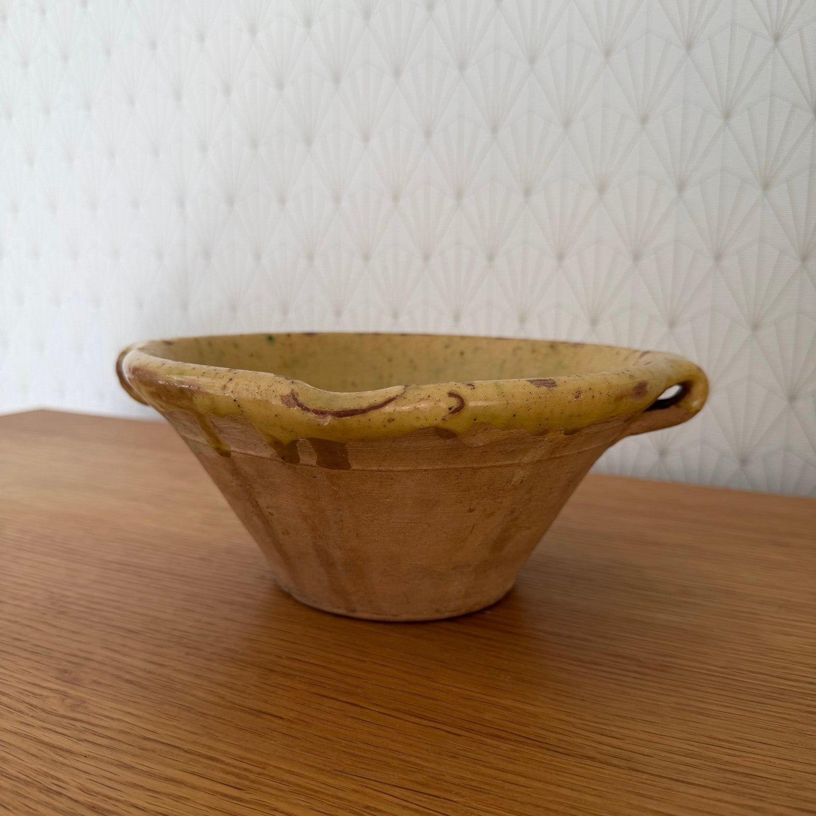 VINTAGE FRENCH GLAZED YELLOW MIXING BOWL TERRINE TIAN 8 1/2" 2210252