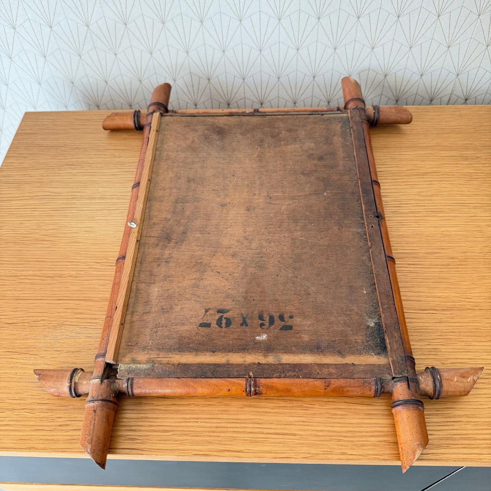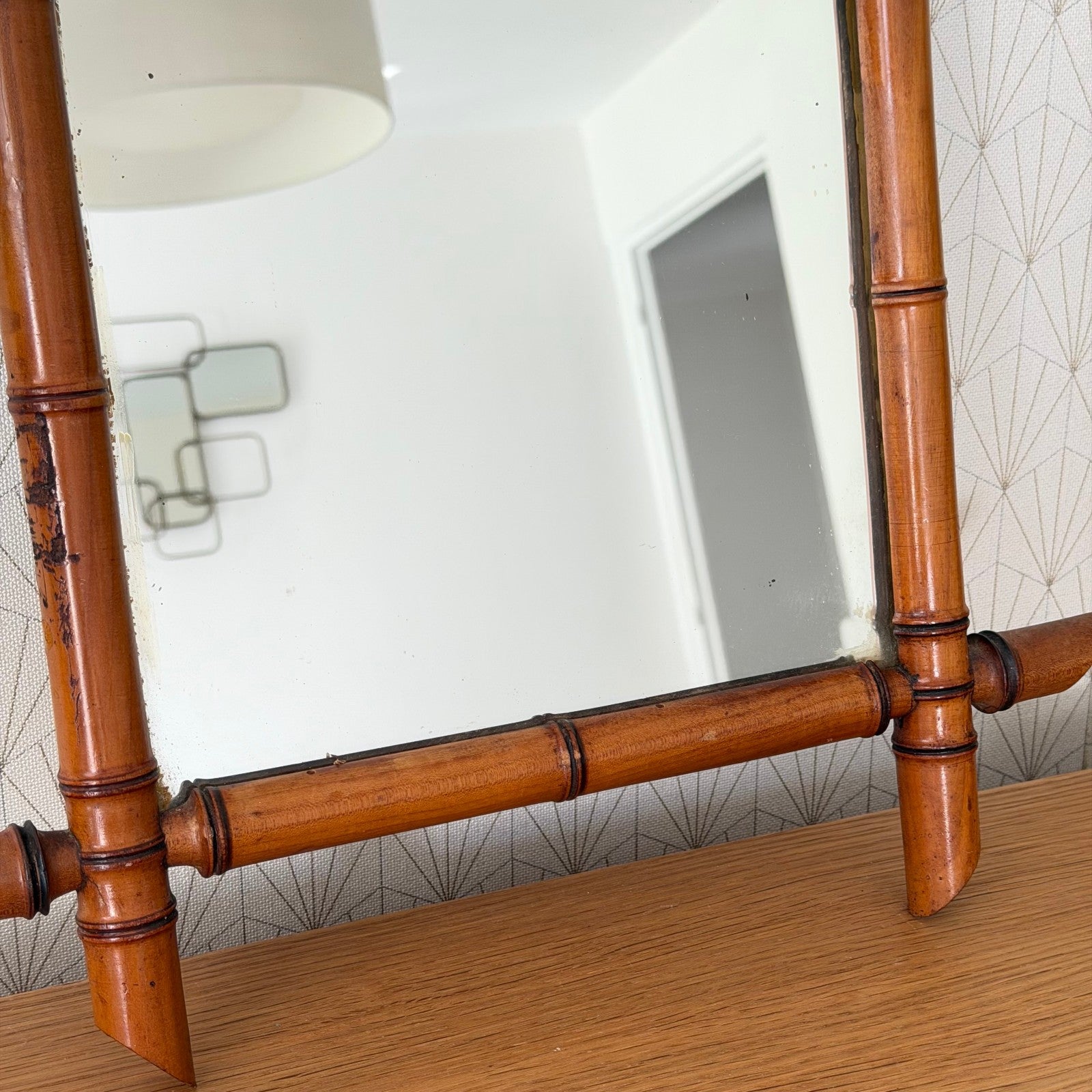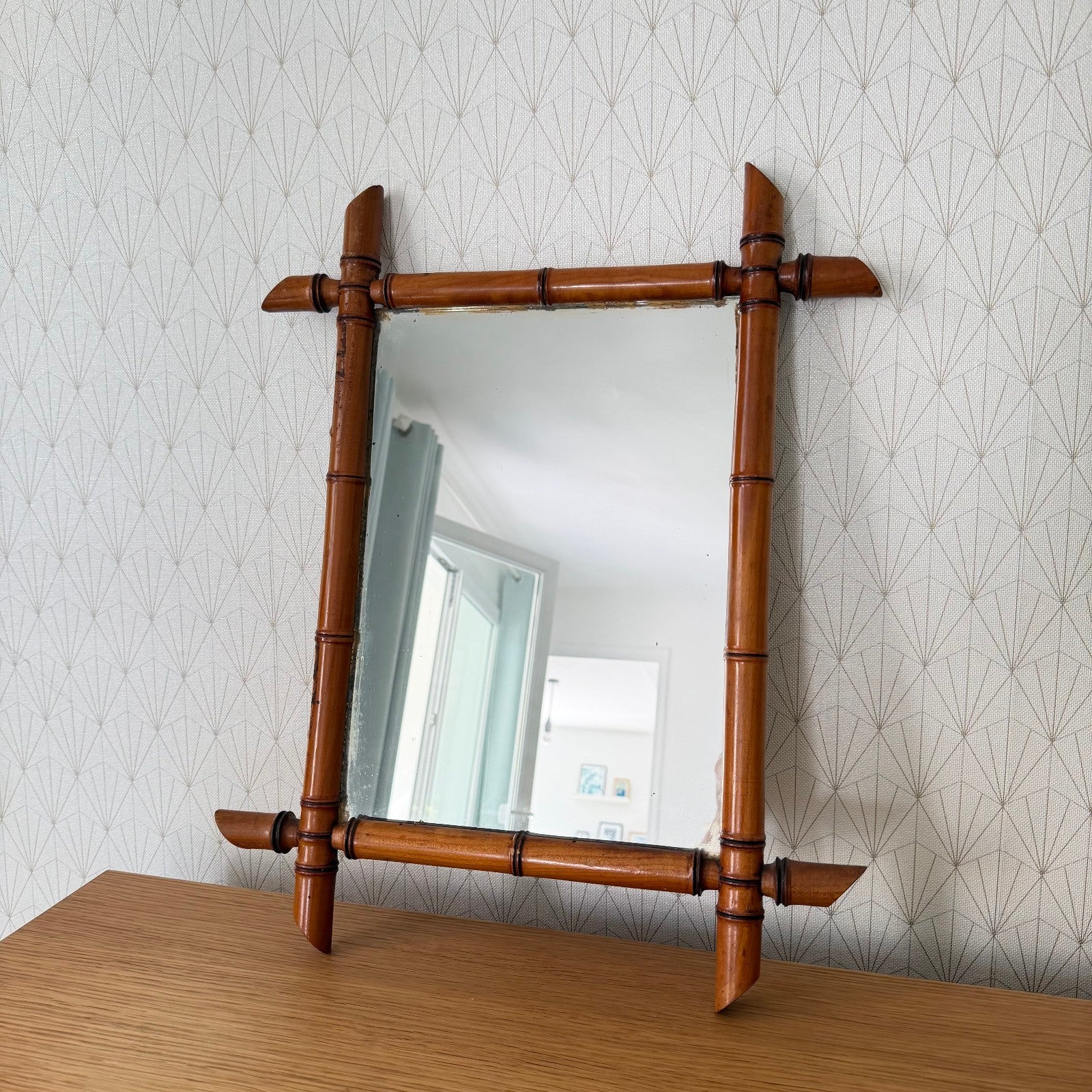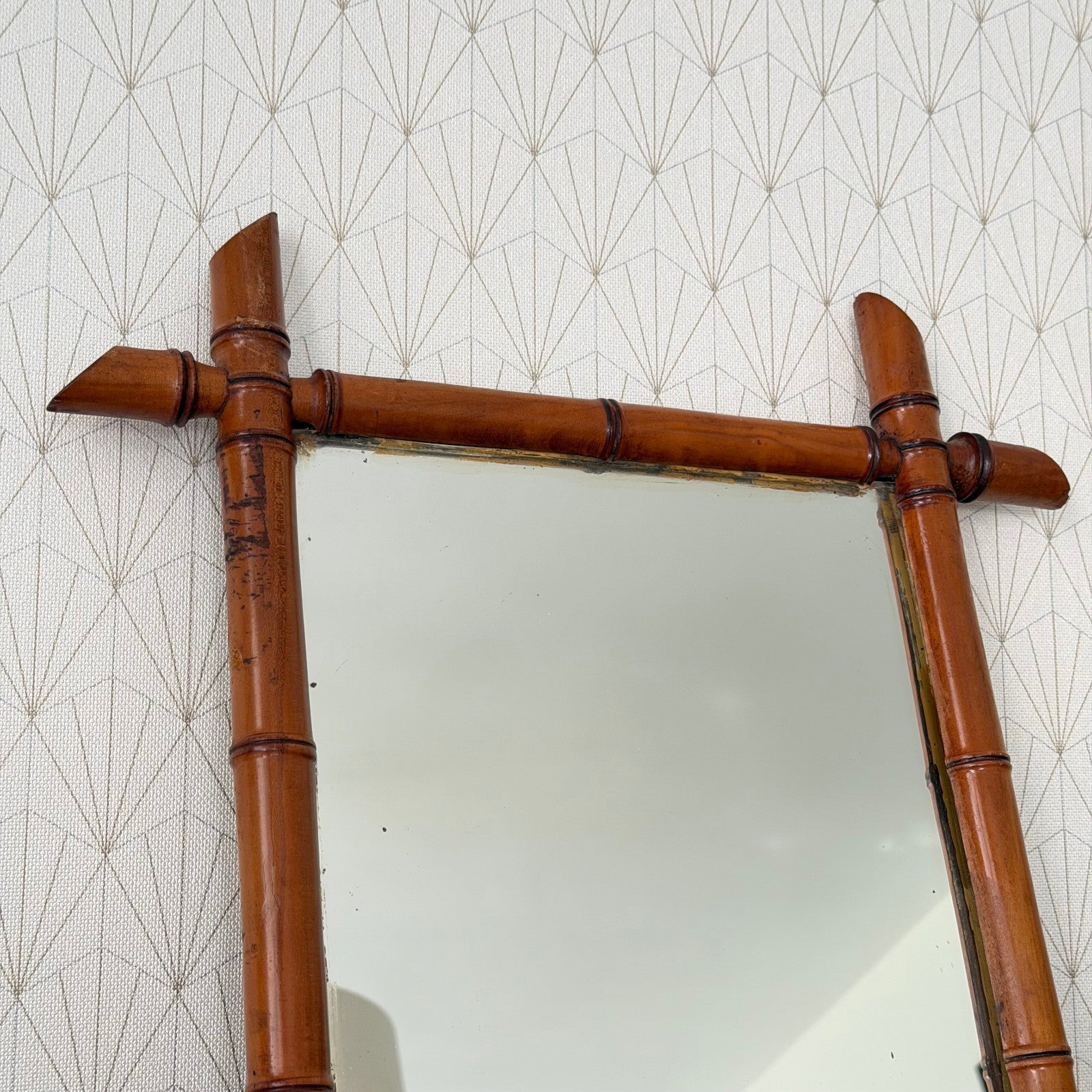 Awesome vintage wooden mirror, faux bamboo style