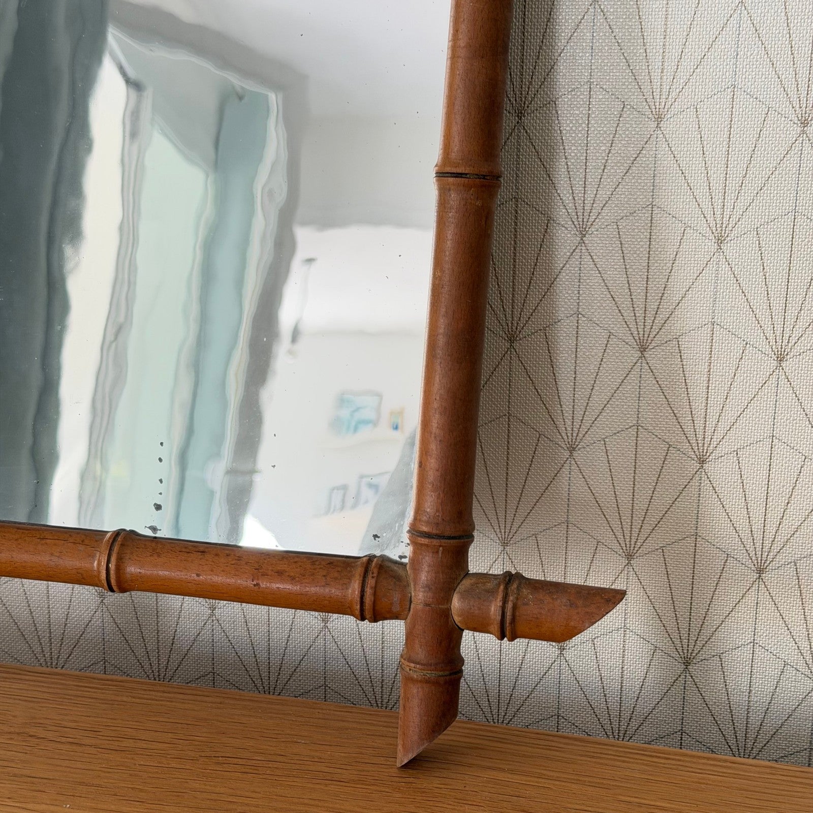 Vintage French wood faux bamboo WALL-HANGING MIRROR 0210252