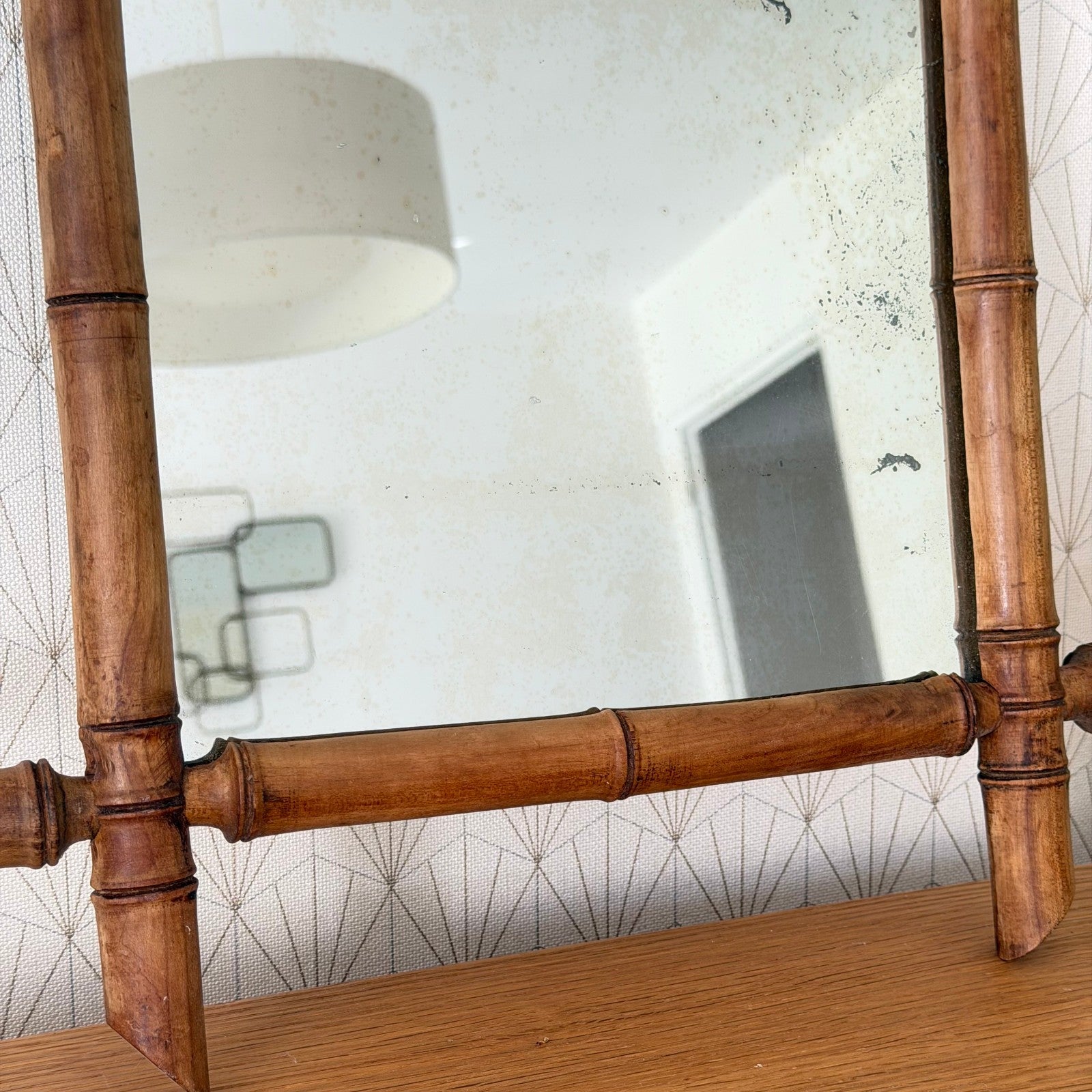 Vintage French wood faux bamboo WALL-HANGING MIRROR 0210253