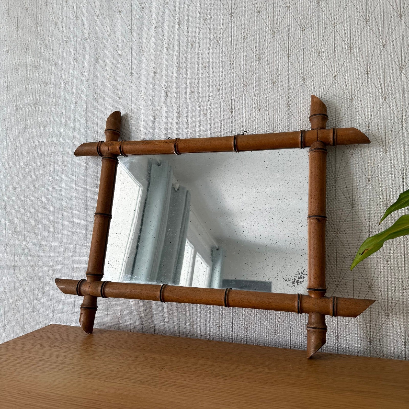 Vintage French wood faux bamboo WALL-HANGING MIRROR 03072514