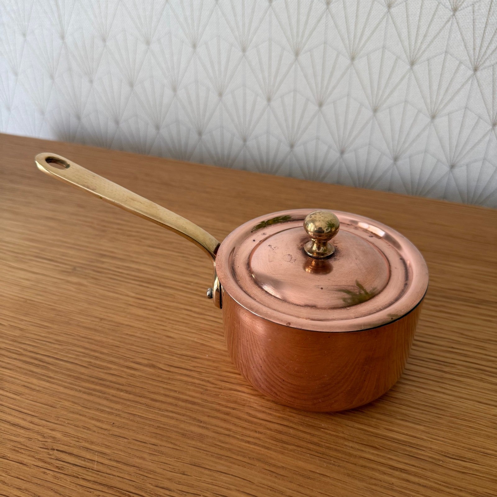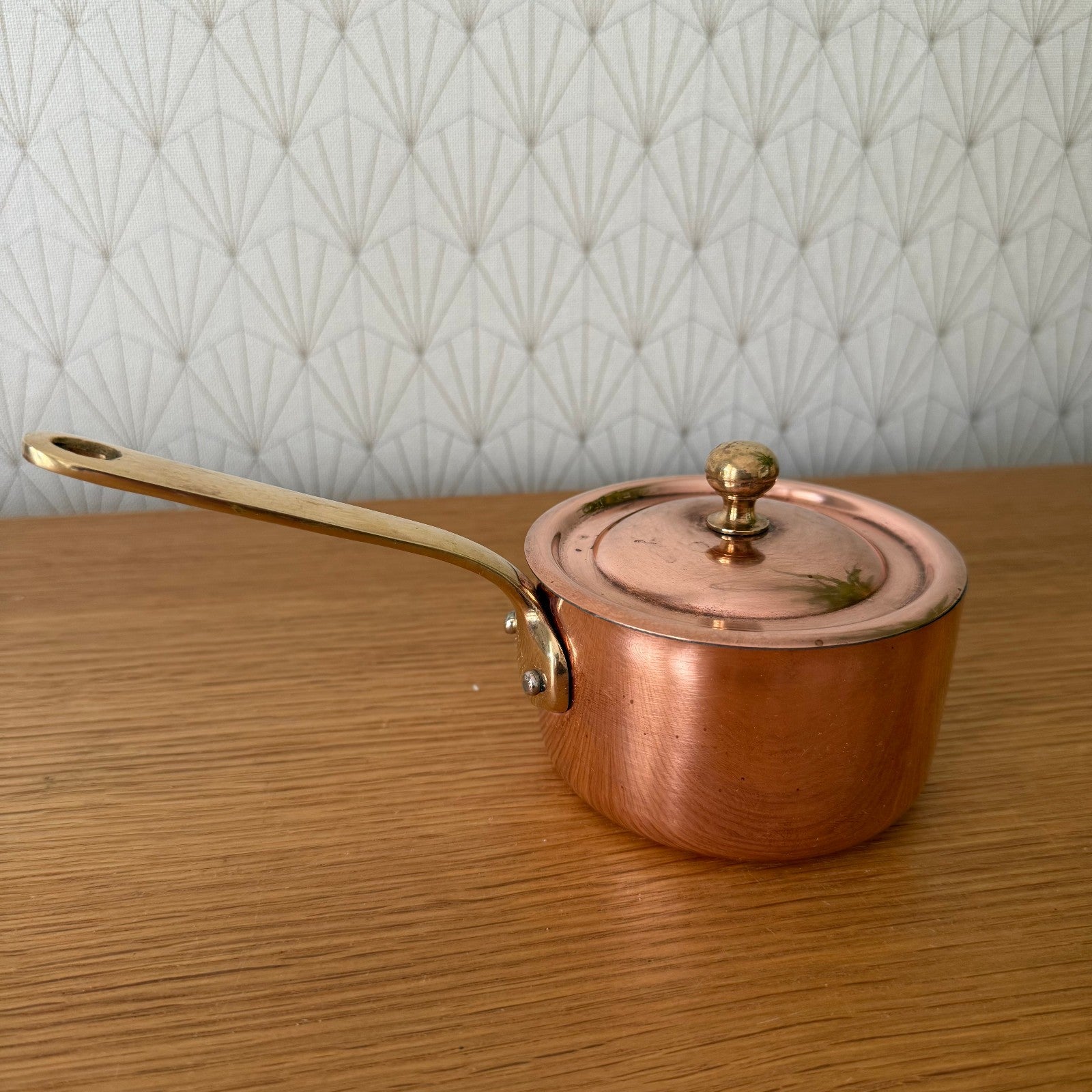 Vintage sauce pan VILLEDIEU French COPPER lining with lid 25072510